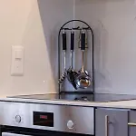 - ❓Is there a kitchen available at this apartment for guest use?Yes, this apartment is furnished with a kitchen and offers an electric kettle, a fridge, and glassware as well.